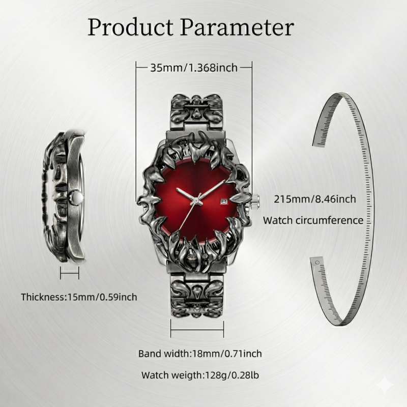 Crimson Eclipse – Gothic Red Dial Metal Watch