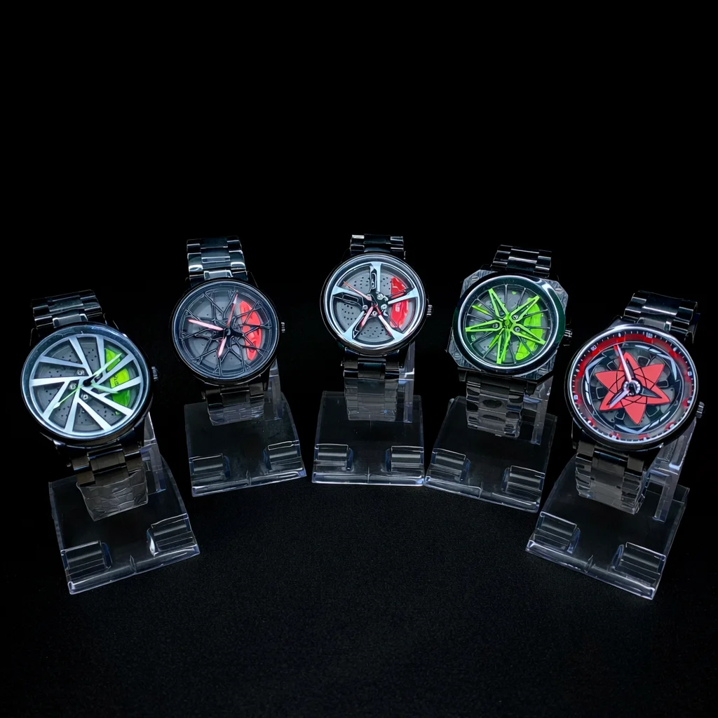 Welcome to our boutique where elegance meets automotive inspiration. Discover authentic car wheel watches, inspired by sport car rims and high-performance designs. Choose from spinning and non-spinning models to elevate your style.